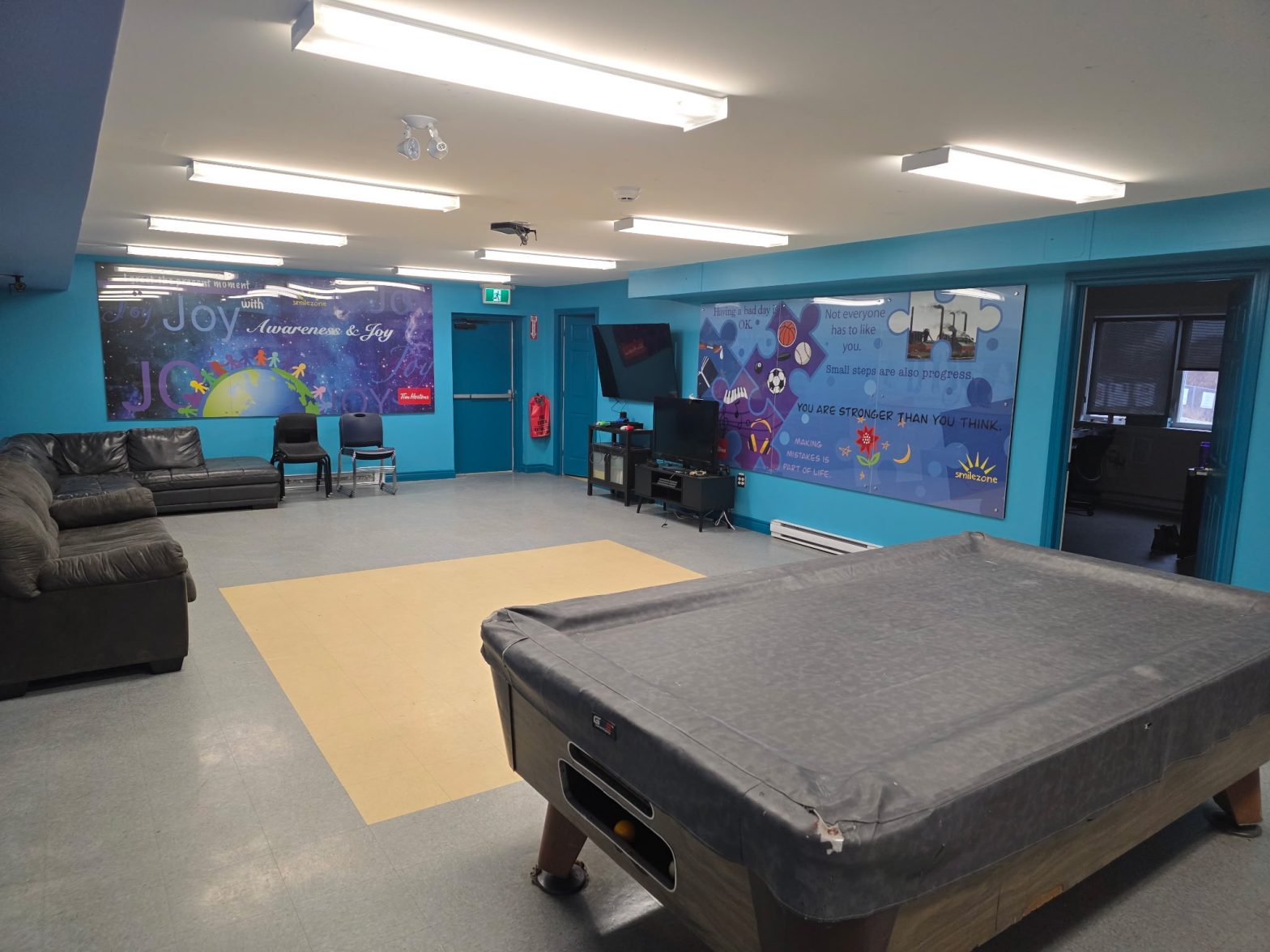 In January 2026, we installed ONE Smilezone at the Boys and Girls Club in Cape Breton! The Smilezone will be located in the Basement Youth Hangout Room! The Smilezones includes: fresh paint, colorful murals, sensory and interactive gaming elements and more! Stay tuned for more details!